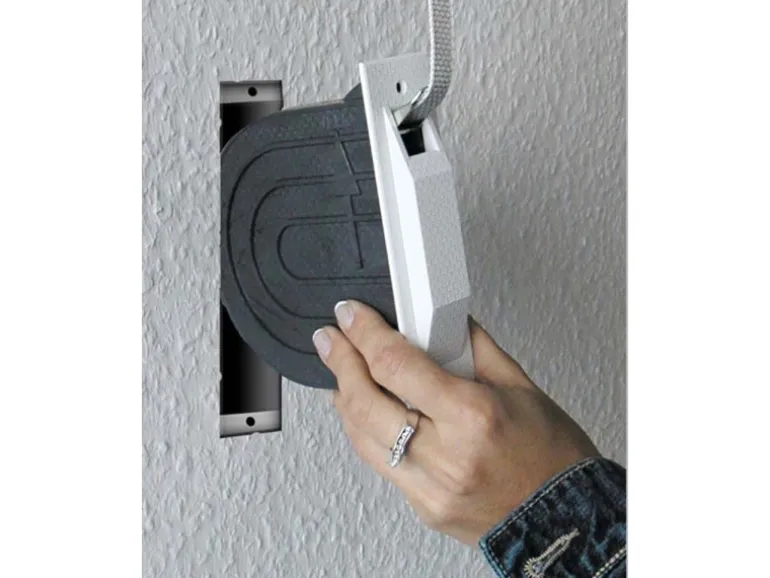Der bereits vormontierte Rollladengurt in Grau entspricht, mit einer Breite von 14 mm, dem Rollladensystem Mini und hat eine Länge von 5 m. Mit Hilfe der weißen Abdeckplatte wird der Einlasswickler nach dem Einbau formschön verdeckt. Montiert wird das Set Unterputz in einer Maueröffnung, wobei sowohl der Lochabstand von 118 mm, als auch die Einbautiefe von 123 mm zu beachten sind.