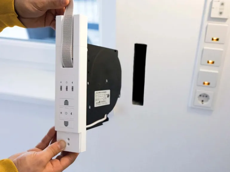 Die integrierte Zeitautomatik macht es möglich, den Rollladen zu gewünschten Uhrzeiten automatisch hoch- oder herunterfahren zu lassen. Dafür ist jeweils eine Auf- bzw. Abfahrt programmierbar. Blockiert der Rollladen oder trifft er auf ein Hindernis, stoppt der elektrische Gurtwickler automatisch. Große Tasten am RolloDrive 105 Standard erleichtern die Bedienung und die Einstellung der Endlagen. Die Stromversorgung erfolgt über ein Netzkabel. Bei Unterbrechung der Stromversorgung, bleiben die gespeicherten Endlagen erhalten.