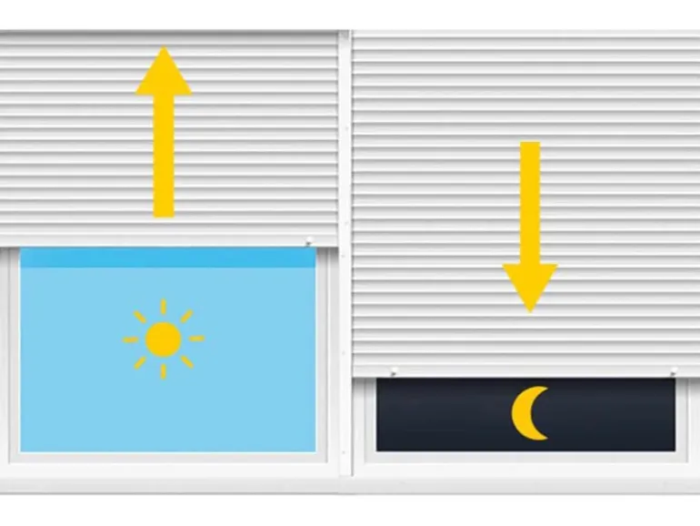Als Erweiterung kann der Rollladen mit einem separat erhältlichen Sonnensensor nach Sonnenstand gesteuert werden. Dadurch können z.B. Einrichtungsgegenstände und Pflanzen vor einer zu hohen Sonneneinstrahlung geschützt werden.