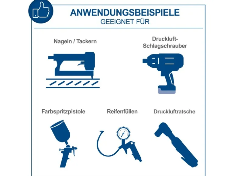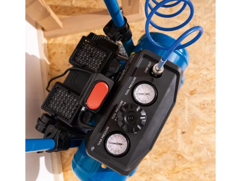 Dadurch ist der Doppeltank-Kompressor nicht nur leise und leistungsstark, sondern auch extrem platzsparend und leicht zu transportieren.