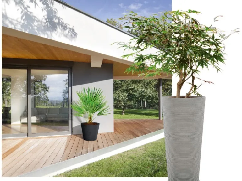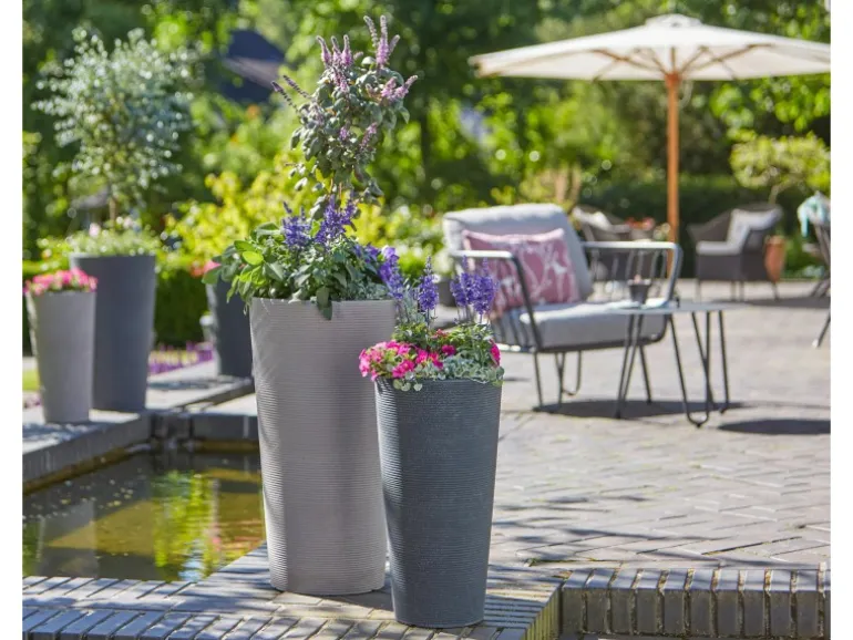 Das Wasserablaufloch in den Scheurich Kunststoff-Pflanzgefäßen schützt die Pflanzen vor Staunässe und kann bei Bedarf mit dem im Gefäßboden parkenden Stöpsel wasserdicht verschlossen werden.