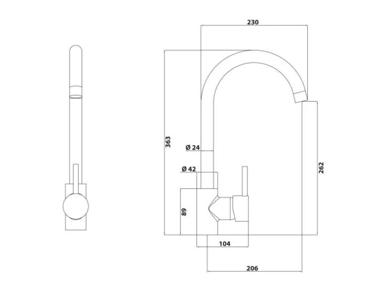 – Gesamttiefe: 23,9 cm, Höhe: 36,3 cm, Auslaufhöhe: 26,2 cm