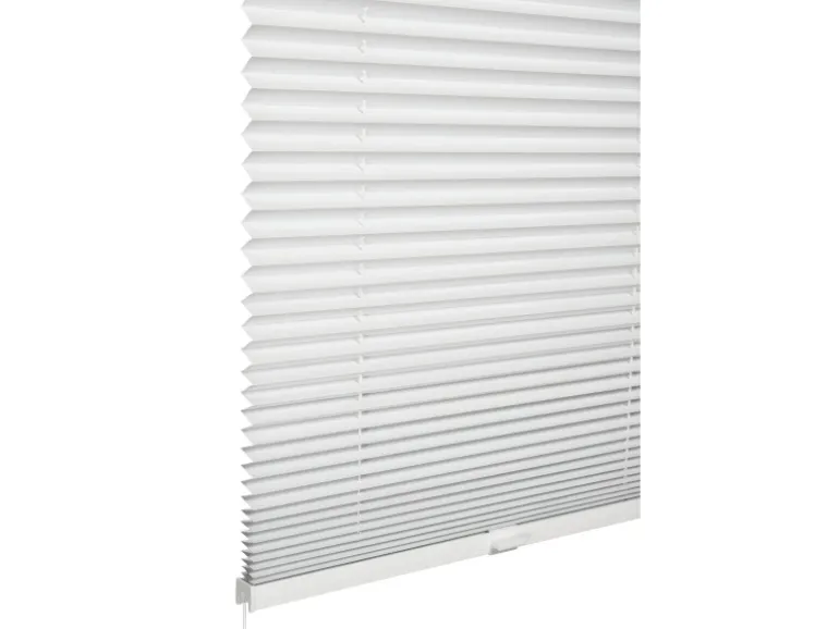 Die Montage kann entweder mit den mitgelieferten Trägern als Schraubmontage in den Fensterfalz erfolgen, oder mit den separat im Zubehör erhältlichen Klebe- oder Klemmlösungen. Die Bedienschienen, Bediengriffe und Träger sind in Weiß gehalten, wodurch sie sich optisch unauffällig an das Plissee anfügen und so den Stoff noch besser zur Geltung bringen.