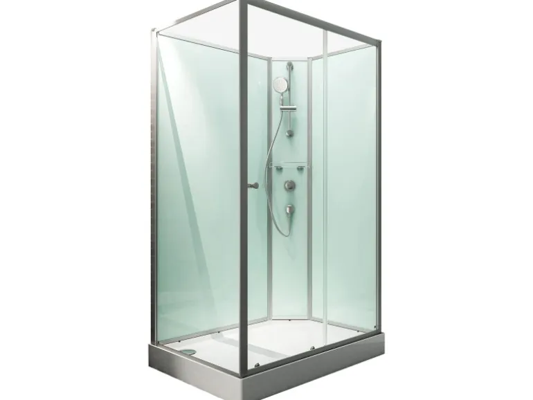 Hochwertige Komplettduschkabine mit Eckeinstieg und Schiebetür aus Aluminium und 4 mm Echtglas