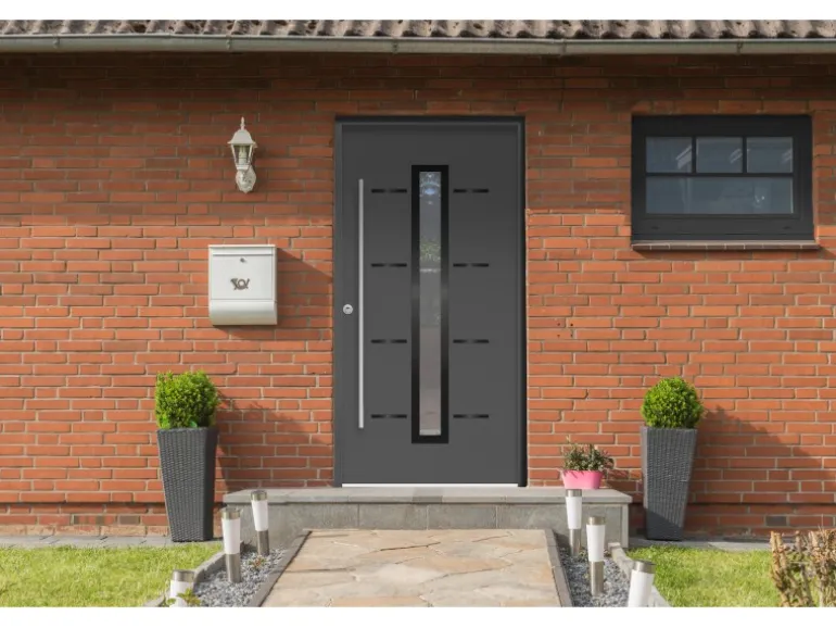Sicherheitshaustür aus Aluminium und Stahl, RC2 Klasse, mit 70 mm Bautiefe und Anschlag Links