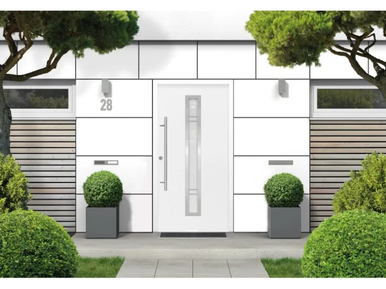 Sicherheitshaustür aus Aluminium und Stahl mit 70 mm Bautiefe und Anschlag Links