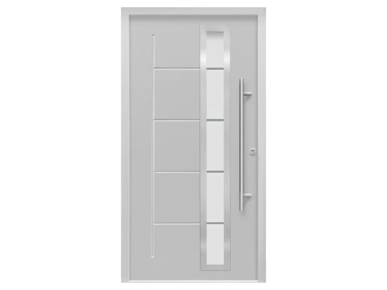 Moderne Tür in Grau mit satinierter Glaseinlage