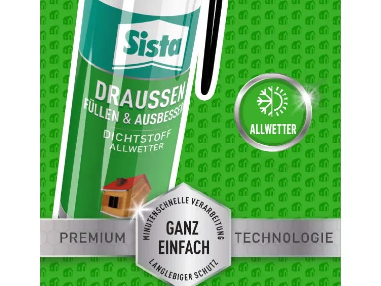 Der Sista Dichtstoff Draußen dient zum Füllen und Abdichten von Rissen, Spalten und Fugen im Außenbereich. Kleine Risse an Garagen, Fassaden, Terrassenplatten, Fenstern oder Türrahmen bessern Sie so schnell und einfach aus.