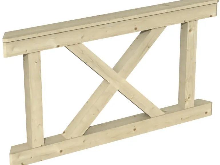 Die Konstruktion ist aus Konstruktionsvollholz (KVH) gefertigt. Als KVH bezeichnet man technisch getrocknetes, endlos verleimtes, massives Fichtenholz. Die einzelnen Holzteile haben wir getrocknet, nach Fehlern gescannt, sortiert und anschließend wetterfest durch Keilzinken miteinander endlos verleimt. Risse, Äste und leichte Verdrehungen spiegeln den Charakter der eingesetzten Materialien wider.