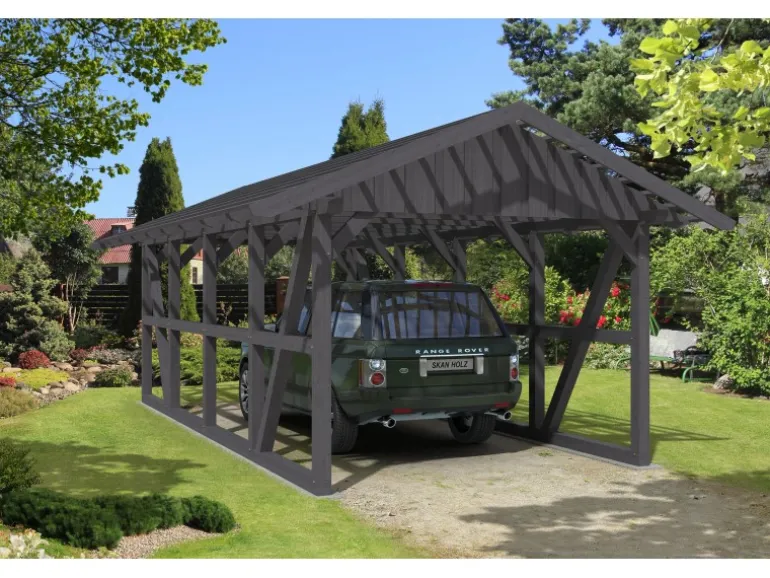 Ablagespuren bei farblich allseitig behandelten Bauteilen sind technisch bedingt. Das Satteldach wird mit Dachlatten zur Eindeckung mit Dachziegeln geliefert. Die Dachziegel sind bauseits zu beschaffen. Zur Verankerung mit der Bodenschwelle mit dem Untergrund sind Dübel im Bausatz enthalten.