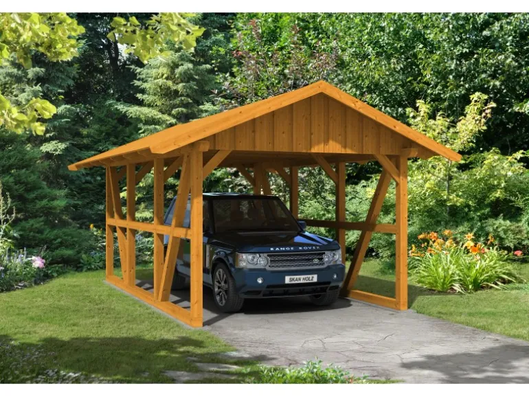 Skan Holz Carport Schwarzwald mit Dachschalung 424 x 600 cm Eiche