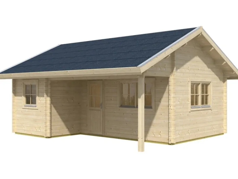 Dach aus 19 mm Profilschalung mit Nut und Feder, Konterlattung und Lattung für die Eindeckung mit Dachziegeln. Dachneigung 24 Grad, Dachüberstand umlaufend 40 cm. Die Dachziegel sind nicht im Lieferumfang enthalten und bauseits zu beschaffen.
