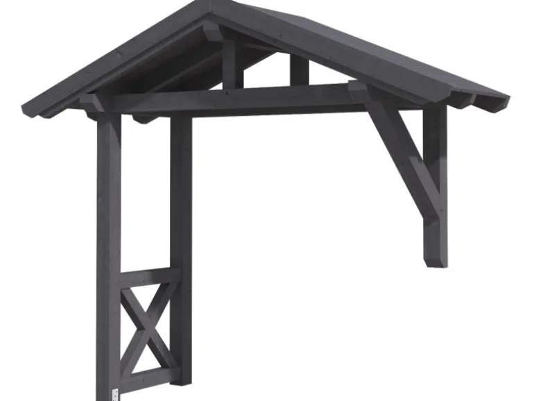 Die Konstruktion des Vordaches ist aus Konstruktionsvollholz (KVH) gefertigt. Als KVH bezeichnet man technisch getrocknetes, endlos verleimtes, massives Fichtenholz. Die einzelnen Holzteile werden getrocknet, nach Fehlern gescannt, sortiert und anschließend wetterfest durch Keilzinken miteinander endlos verleimt. Risse, Äste und leichte Verdrehungen spiegeln den Charakter der eingesetzten Materialien wider.