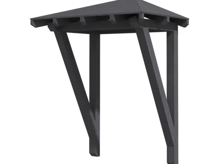 Die Konstruktion des Vordaches ist aus Konstruktionsvollholz (KVH) gefertigt. Als KVH bezeichnet man technisch getrocknetes, endlos verleimtes, massives Fichtenholz. Die einzelnen Holzteile werden getrocknet, nach Fehlern gescannt, sortiert und anschließend wetterfest durch Keilzinken miteinander endlos verleimt. Risse, Äste und leichte Verdrehungen spiegeln den Charakter der eingesetzten Materialien wider.
