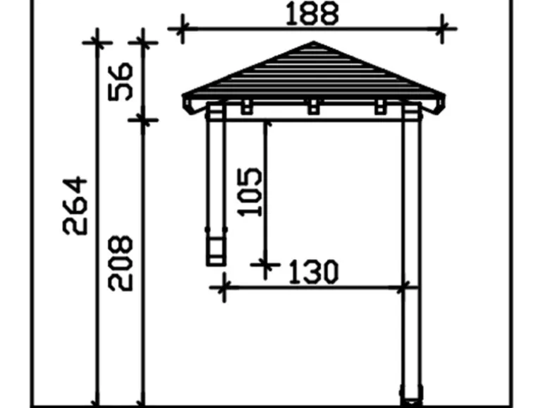 Die Konstruktion des Vordaches ist aus Konstruktionsvollholz (KVH) gefertigt. Als KVH bezeichnet man technisch getrocknetes, endlos verleimtes, massives Fichtenholz. Die einzelnen Holzteile werden getrocknet, nach Fehlern gescannt, sortiert und anschließend wetterfest durch Keilzinken miteinander endlos verleimt. Risse, Äste und leichte Verdrehungen spiegeln den Charakter der eingesetzten Materialien wider.