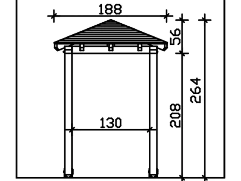 Die Konstruktion des Vordaches ist aus Konstruktionsvollholz (KVH) gefertigt. Als KVH bezeichnet man technisch getrocknetes, endlos verleimtes, massives Fichtenholz. Die einzelnen Holzteile werden getrocknet, nach Fehlern gescannt, sortiert und anschließend wetterfest durch Keilzinken miteinander endlos verleimt. Risse, Äste und leichte Verdrehungen spiegeln den Charakter der eingesetzten Materialien wider.
