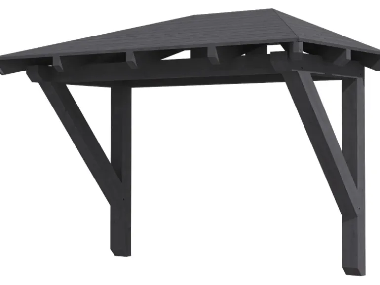 Die Konstruktion des Vordaches ist aus Konstruktionsvollholz (KVH) gefertigt. Als KVH bezeichnet man technisch getrocknetes, endlos verleimtes, massives Fichtenholz. Die einzelnen Holzteile werden getrocknet, nach Fehlern gescannt, sortiert und anschließend wetterfest durch Keilzinken miteinander endlos verleimt. Risse, Äste und leichte Verdrehungen spiegeln den Charakter der eingesetzten Materialien wider.