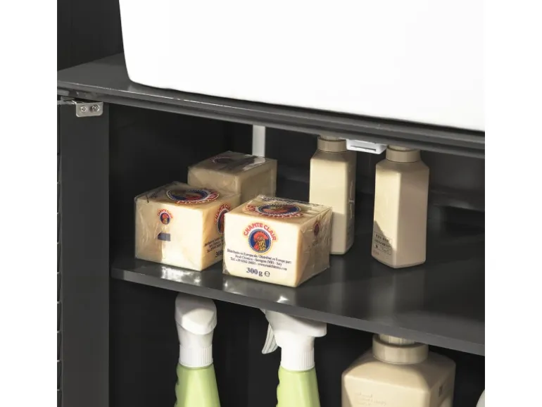 Der Schrank verfügt über erhöhte, wasserdichte Füße.