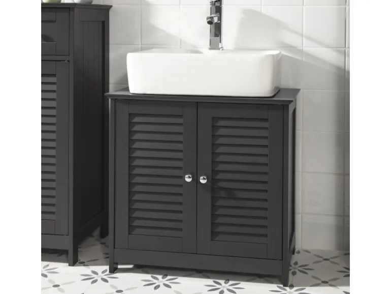 Die Lamellentüren fördern Luftzirkulation, verhindern Feuchtigkeit, Schimmel und Gerüche und verleihen dem Bad einen eleganten, ästhetischen Look.