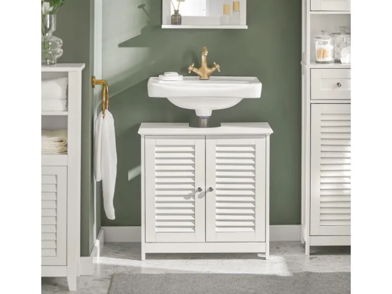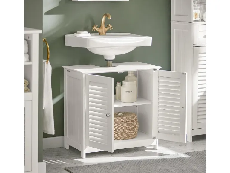 Die Lamellentüren fördern Luftzirkulation, verhindern Feuchtigkeit, Schimmel und Gerüche und verleihen dem Bad einen eleganten, ästhetischen Look.