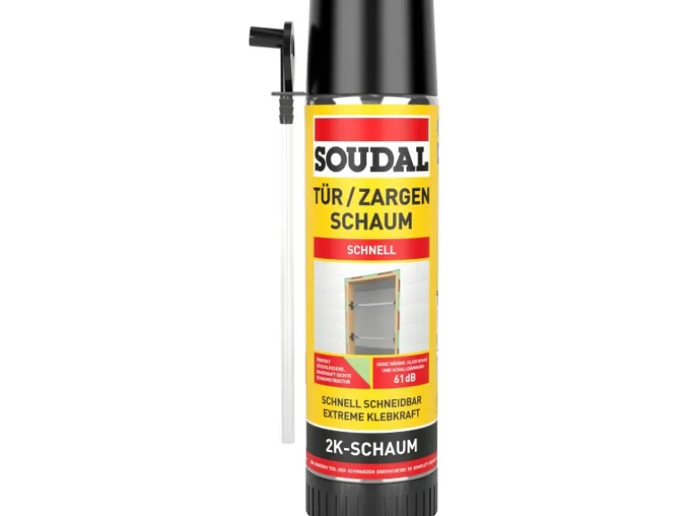 Soudal Zargenschaum ist ein gebrauchsfertiger, 2komponentiger, selbstexpandierender Polyurethan-Schnellschaum mit sehr guter Schall- und Wärmedämmung, hervorragender Formstabilität sowie extremer Klebkraft. Er eignet sich für die Montage und Dämmung von Türzargen, Holztürfuttern und Fensterelementen am Baukörper, nach EnEV, DIN 4108-7 und RAL-Montagerichtlinien, zur Montage von DIN-geprüften Fensterbänken und Treppenstufen, zum Setzen von Badewannen- und Duschtassenträgern (wirkt schallisolierend und verhindert Wärmeverlust des Badewassers) sowie zum Setzen von Acrylbadewannen im Wanne-in-Wanne-System. Der Schaum härtet unabhängig von Luftfeuchtigkeit extrem schnell druck- und spannungsfrei aus. Er zeichnet sich durch eine hervorragende Formstabilität, d.h. kein Volumenschwund und keine Nachdehnung aus, sobald die Aushärtung abgeschlossen ist.