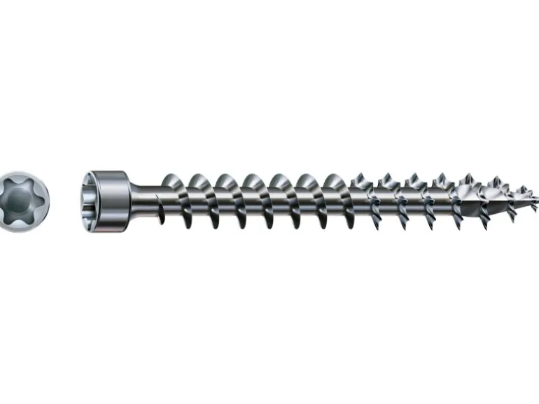 Der T-Star plus-Antrieb von Spax zeichnet sich durch eine sehr gute Kraftübertragung aus, wodurch Durchrutschen und Runddrehen fast vollständig vermieden wird. Schrauben mit T-Star Antrieb lassen sich mit kleinem Werkzeug eindrehen wodurch sie besonders für schwer zugängliche Stellen geeignet sind. Zusätzlich wird beim schrauben kein großer Anpressdruck benötigt um ein Verrutschen zu vermeiden. Die Wirox Holzschraube verfügt über einen deutlich besseren Korrosionsschutz als blanker Stahl. Aber nicht nur der Schutz vor äußeren Einflüssen ist deutlich besser, sondern auch die Optik wirkt viel edler. Der am Werkstoff anliegende Zylinderkopf erhöht den Anpressdruck und verhindert eine Beschädigung am Material. Er kann nicht wie ein Sechskantkopf von der Seite bedient werden, hier findet die Verschraubung immer von oben statt.