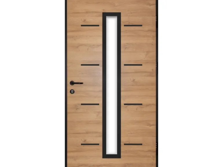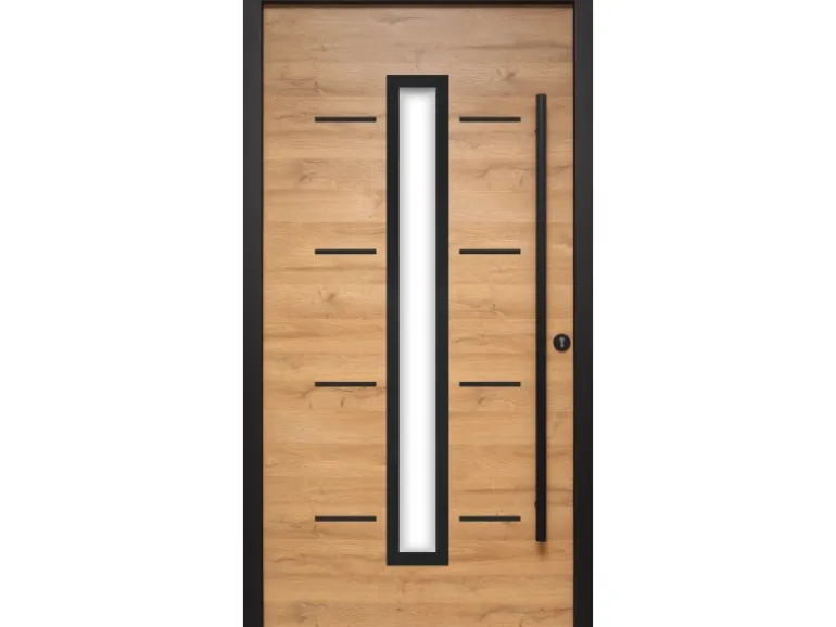 Darüber hinaus dient das Glaselement aus satinierter 3-fach ISO-Verglasung nicht nur der schönen Optik, sondern reduziert ebenfalls Ihre Heizkosten und dient als natürliche Lichtquelle für Ihren Flur. Dank dieser Maßnahmen besitzt die Haustür einen hervorragenden Wärmedämmwert (Ud-Wert) von 0,79 W/m²K, was diese besonders für Niedrigenergiehäuser geeignet macht.
