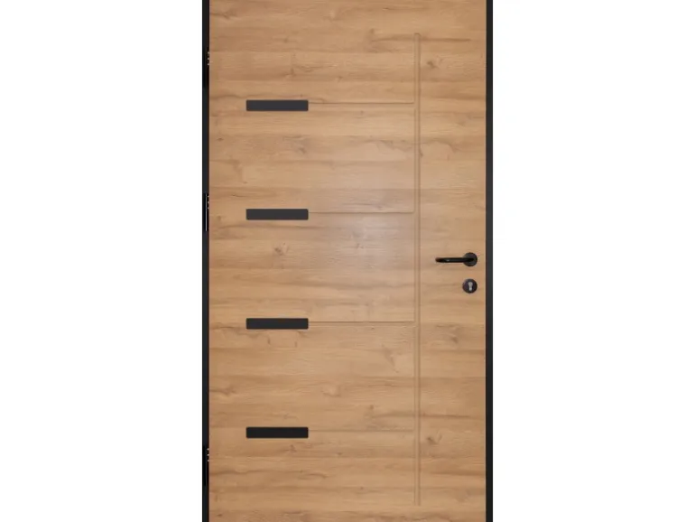 Modernes Design mit schwarzen Rahmen und Türblatt in Holzdekor Eiche natur