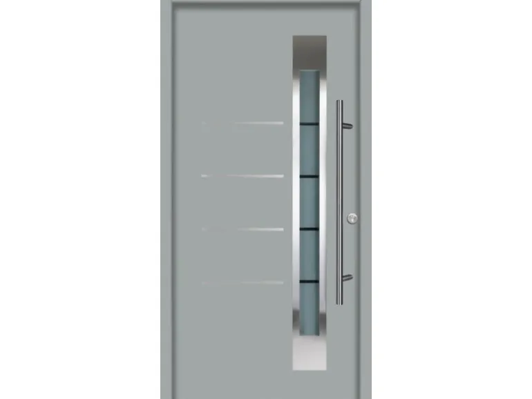 Tief eingelassene Edelstahlapplikation innen und außen mit dem Türblatt flächenbündig