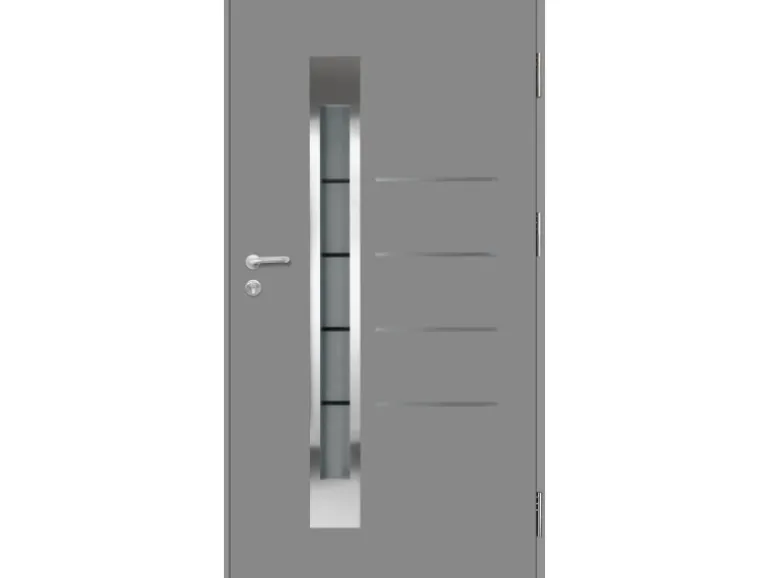 Tief eingelassene Edelstahlapplikation innen und außen mit dem Türblatt flächenbündig