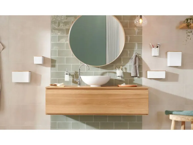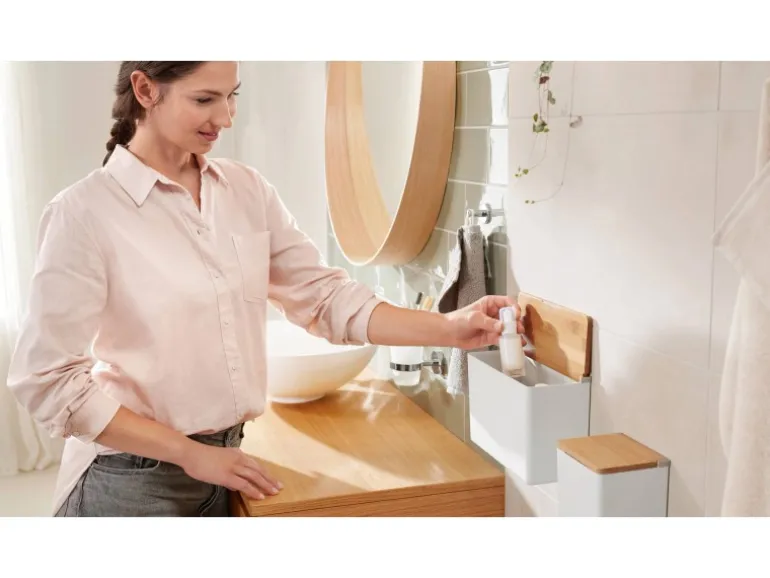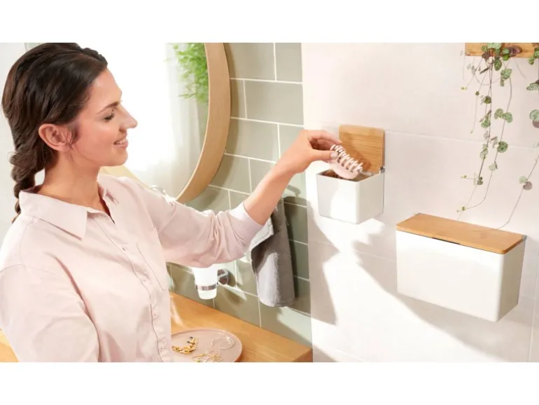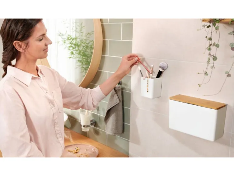 Aufbewahrungsbox mit tesa Powerstrips Waterproof-Technologie (All-in-One-Klebemontagelösung)