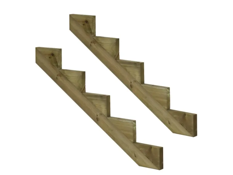 Dann verwenden Sie unsere praktischen Treppenwangen aus imprägniertem Holz (KDI)! Unsere Treppenwangen sind mit 2, 3, 4, 5, 6, 7 oder 8 Stufen erhältlich und die benötigte Anzahl hängt von der Breite Ihrer Treppe ab. Legen Sie die Treppenwangen im Abstand von max. 60 cm hin und schrauben Sie die Holzstufenbretter darauf. Für zusätzliche Stabilität und Sicherheit können Sie auch eine Setzstufe hinter jeder Stufe anbringen, indem Sie ein Holzbrett vertikal gegen die Treppenwange schrauben. Für die Treppenstufen empfehlen wir unsere KDI Terrassenbretten.