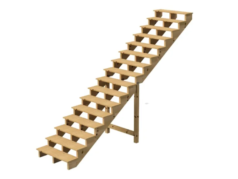Mit diesem Set erhalten Sie alles, was Sie brauchen, um Ihre eigene Außentreppe mit Leichtigkeit zu bauen. Jedes Set enthält die Treppenwangen, die Holzbretter für die Treppenstufen und die Edelstahlschrauben zum Befestigen der Stufen an den Wangen. Alles ist auf die richtige Größe zugeschnitten. Sie müssen die Treppe nur noch zusammenschrauben! Das einzige Werkzeug, das Sie benötigen, ist ein (elektrischer) Schraubendreher.