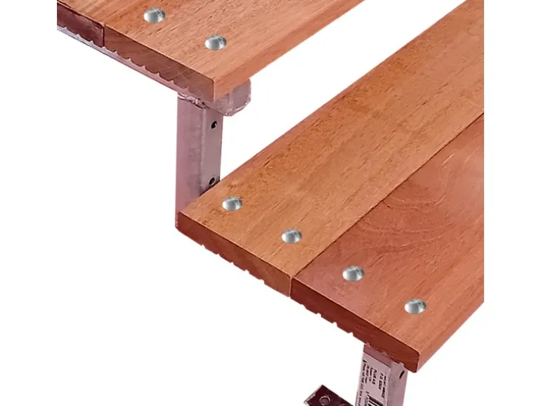 Bei dieser Kombination aus einer Bali Gartentreppe Stahl und einer Außentreppe Hartholz werden ausreichend Edelstahlschrauben, Unterlegscheiben und Muttern mitgeliefert um die Treppe komplett und einfach zu montieren.