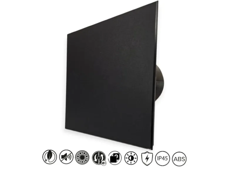 Erleben Sie moderne Belüftung neu: Der Design-Badlüfter EOS 100 BK vereint stilvolles Design mit fortschrittlicher Technologie. Dank seiner eleganten Glasfront in mattem, tiefem Schwarz, seiner leisen Betriebsweise und seiner energiesparenden Leistung ist er die perfekte Wahl für Badezimmer, Küchen, Duschräume oder Keller.