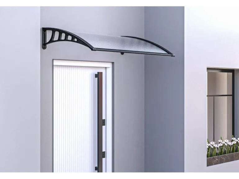 Schützt den Hauseingangsbereich vor Regen und Schnee (max. 50 kg/m² Schneelast), hält Windstärke 3 stand