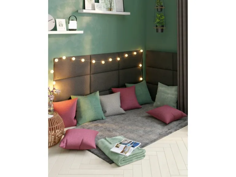 Geeignet als Polsterung an der Wand hinter Bett oder Bank und zur Wandgestaltung im Kinderzimmer