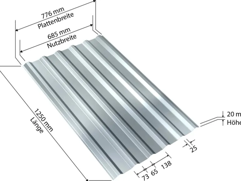 Weckman Stahltrapezblech Verzinkt 1250 mm x 776 mm Stärke 0,35 mm Aluminium-Zink