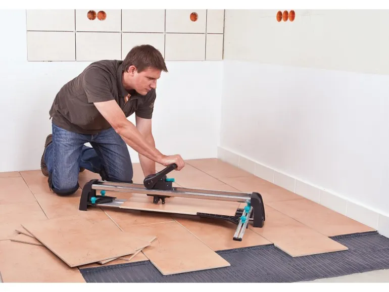 Der Fliesenschneider ist für Rechtshänder sowie für Linkshänder geeignet. Er hat eine stabile und verwindungssteife Grundplatte aus Aluminium-Profil. Außerdem besitzt er eine spezielle Führung für Diagonalschnitte. Beim Arbeiten wird ein freier Blick auf den Schneidvorgang ermöglicht. Der Fliesenschneider ist wartungsarm und verschafft dank Rillenkugellager und C-Profilschienen eine präzise Führung.
