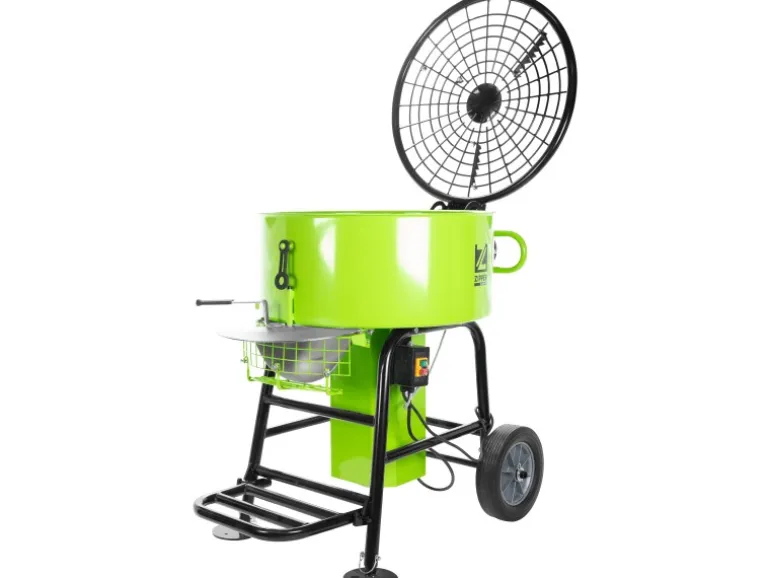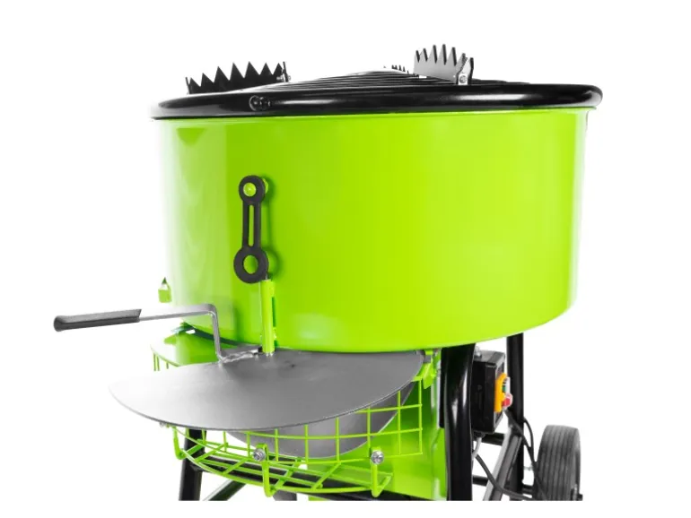 Der Zipper Betonmischer ZI-ZWM120 hat ein Trommelvolumen von 120 l (max. 54 kg). Es gibt eine klappbare Eimeraufstellvorrichtung (Höhe zum Auslass 328 mm) und eine Fahreinrichtung für einen erleichterten Transport. Der Betonmischer hat ein Zwischengetriebe (Motor/Mischwerk) und die Mischwerkumdrehung beträgt 31 min-1. Durch den Deckel mit Sicherheitsschalter ist für optimale Sicherheit gesorgt.