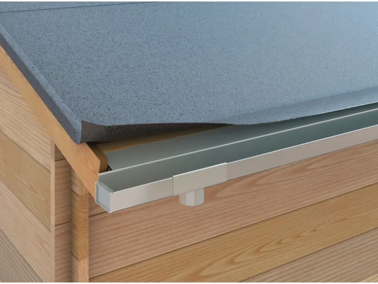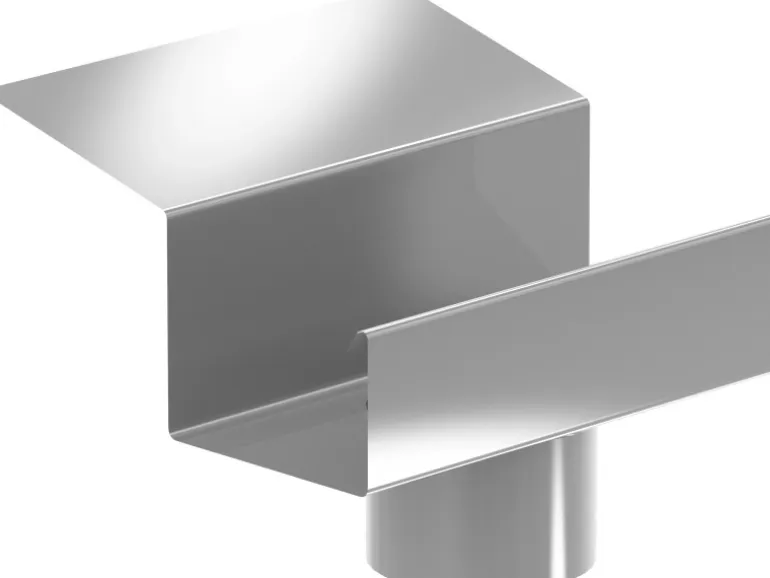 Der SDF Ablaufstutzen dient zur Verbindung zwischen SDF Dachrinne und Fallrohr bzw. Fallrohrbogen. Er wird mit Pappnägeln oder Senkkopfschrauben auf der Dachschalung angebracht. Die Verbindung mit der Dachrinne erfolgt über einfaches Kleben und Stecken.