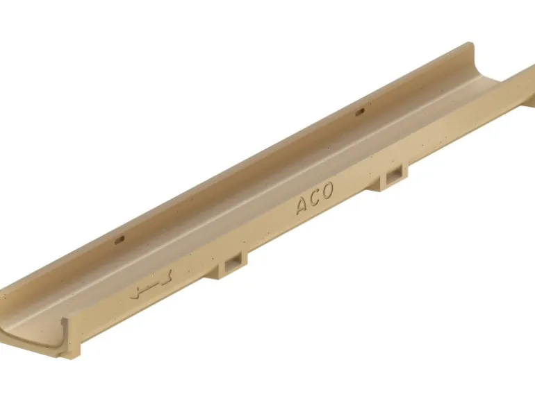 Der widerstandsfähige Rinnenkorpus zeichnet sich durch sein formstabiles und robustes Material aus. Neben absoluter Frost- und Tausalzbeständigkeit ist er besonders stabil sowie PKW-befahrbar. Der eingesetzte Polymerbeton ist im Vergleich zu reinem Beton leichter, wodurch eine optimierte Handhabung gewährleistet ist.