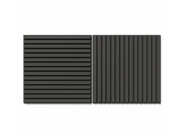 Die Leisten sind gleichmäßig auf dem Filzträger angeordnet, was insbesondere mittlere und hohe Frequenzen dämpft, während der Akustikfilz den restlichen Schall absorbiert. Dies reduziert den Nachhall und gewährleistet ein klares Klangbild sowie ein beruhigendes Raumklima.