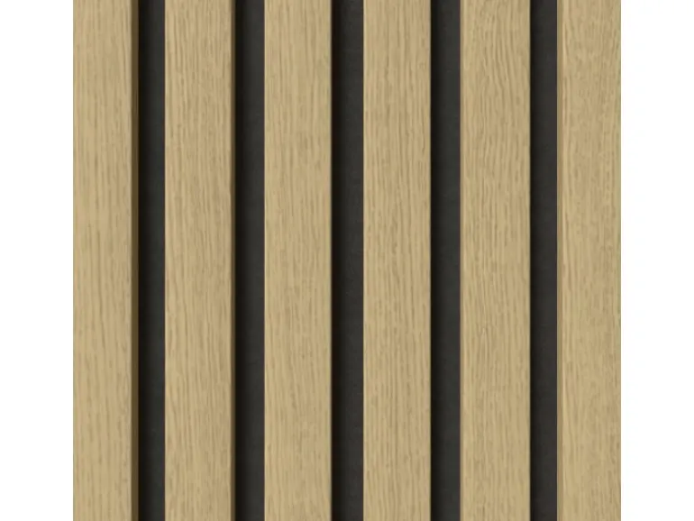 Die Akustikplatten lassen den Raum dank ihrer Streifenoptik tiefer und größer wirken. Kombinieren Sie verschiedene Formen und Proportionen von Akustikpaneelen, um einzigartige Muster und Designs an Wänden und Decken zu schaffen. Die Oberflächen in Folie unterstützen den skandinavischen Stil des Panels.