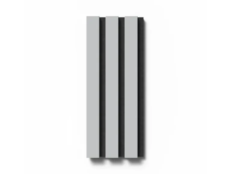 Die Akustikplatten lassen den Raum dank ihrer Streifenoptik tiefer und größer wirken. Kombinieren Sie verschiedene Formen und Proportionen von Akustikpaneelen, um einzigartige Muster und Designs an Wänden und Decken zu schaffen. Die Oberflächen in Folie unterstützen den skandinavischen Stil des Panels.