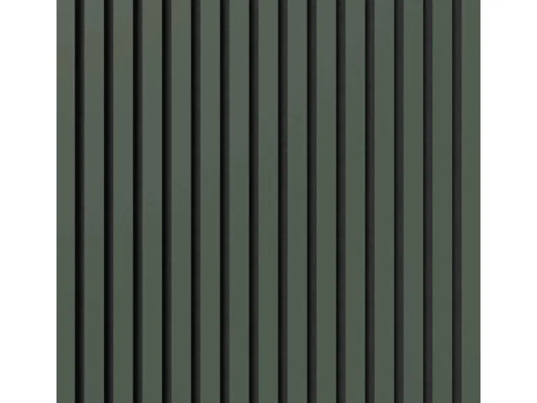 Die Akustikplatten lassen den Raum dank ihrer Streifenoptik tiefer und größer wirken. Kombinieren Sie verschiedene Formen und Proportionen von Akustikpaneelen, um einzigartige Muster und Designs an Wänden und Decken zu schaffen. Die Oberflächen in Linoleum unterstützen den skandinavischen Stil des Panels.