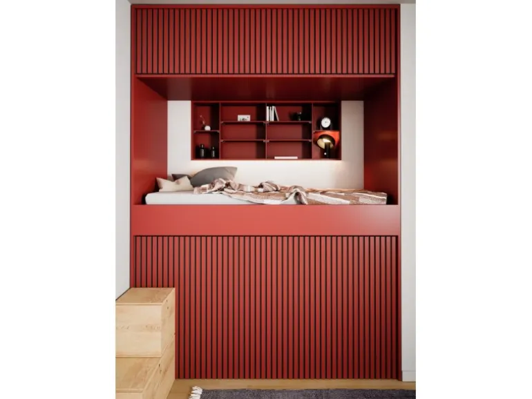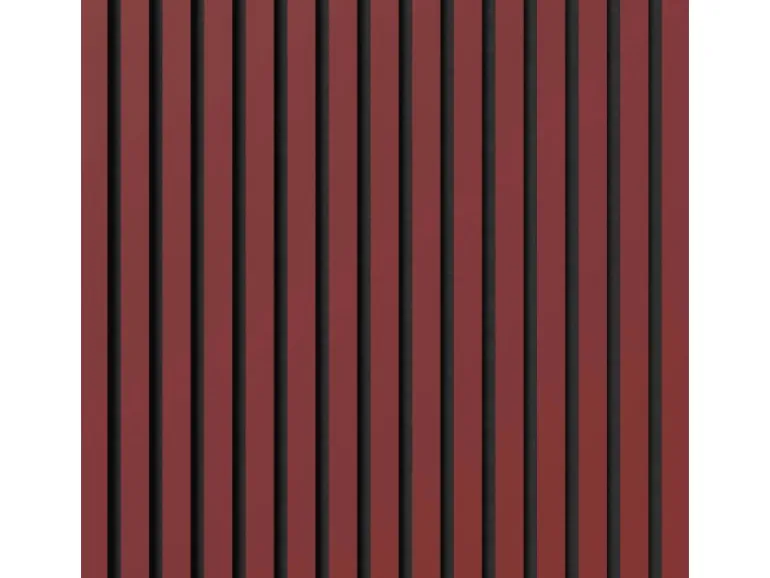 Die Akustikplatten lassen den Raum dank ihrer Streifenoptik tiefer und größer wirken. Kombinieren Sie verschiedene Formen und Proportionen von Akustikpaneelen, um einzigartige Muster und Designs an Wänden und Decken zu schaffen. Die Oberflächen in Linoleum unterstützen den skandinavischen Stil des Panels.