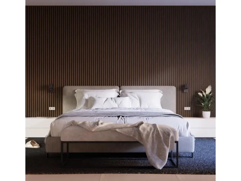 Die Akustikplatten lassen den Raum dank ihres Holzlooks tiefer und größer wirken. Kombinieren Sie verschiedene Formen und Proportionen von Akustikpaneelen, um einzigartige Muster und Designs an Wänden und Decken zu gestalten. Die Oberflächen aus echtem Holzfurnier unterstützen den skandinavischen Stil des Panels.