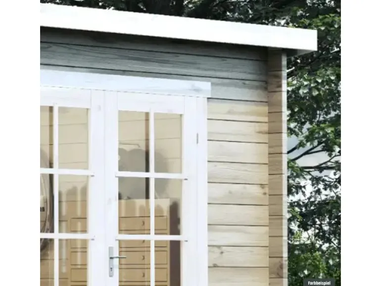 Achtung: Fußboden und Fundamenthölzer sowie eine Dacheindeckung sind nicht im Lieferumfang enthalten.
