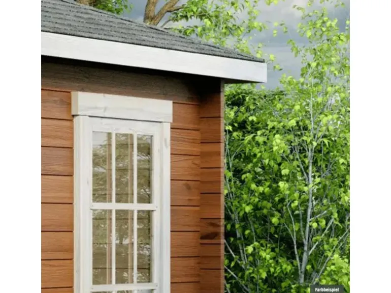 Achtung: Fußboden und Fundamenthölzer sowie eine Dacheindeckung sind nicht im Lieferumfang enthalten.